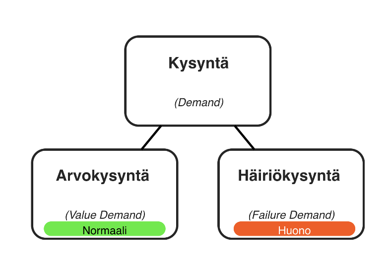 Arvokysyntä on ’normaalia, tervettä peruskysyntää’, joka syntyy asiakastarpeista, joihin organisaatio vastaa tarjoamalla sopivia palveluita ja/tai tuotteita. Häiriökysyntä on turhaa lisäkysyntää, joka syntyy kun asiakastarpeita ei ole kyetty täyttämään, ja asiakas joutuu palaamaan palvelun pariin. Häiriökysyntä on eräs merkittävä syy tehottomuuteen ja kustannusten kasvuun organisaatioissa.